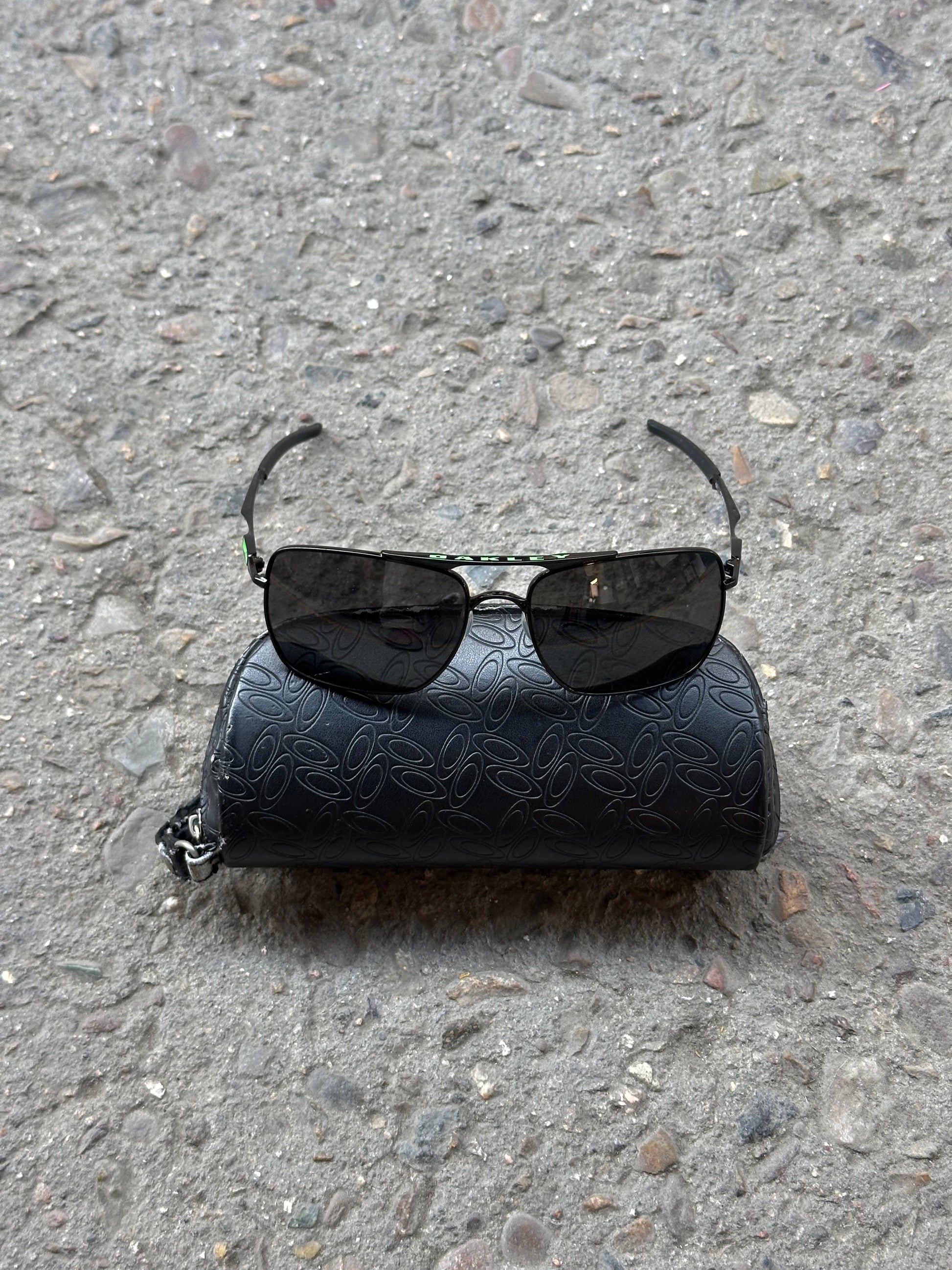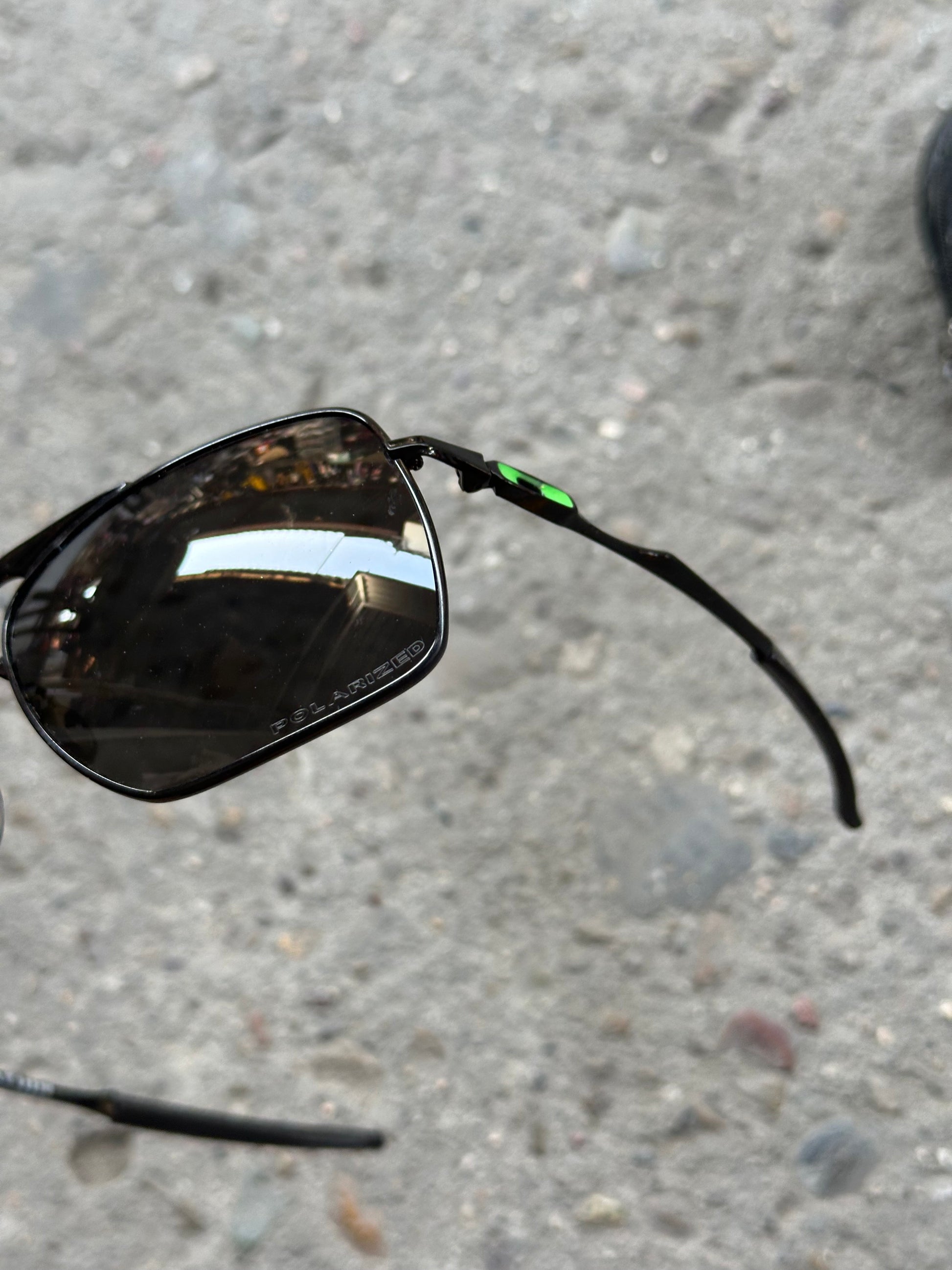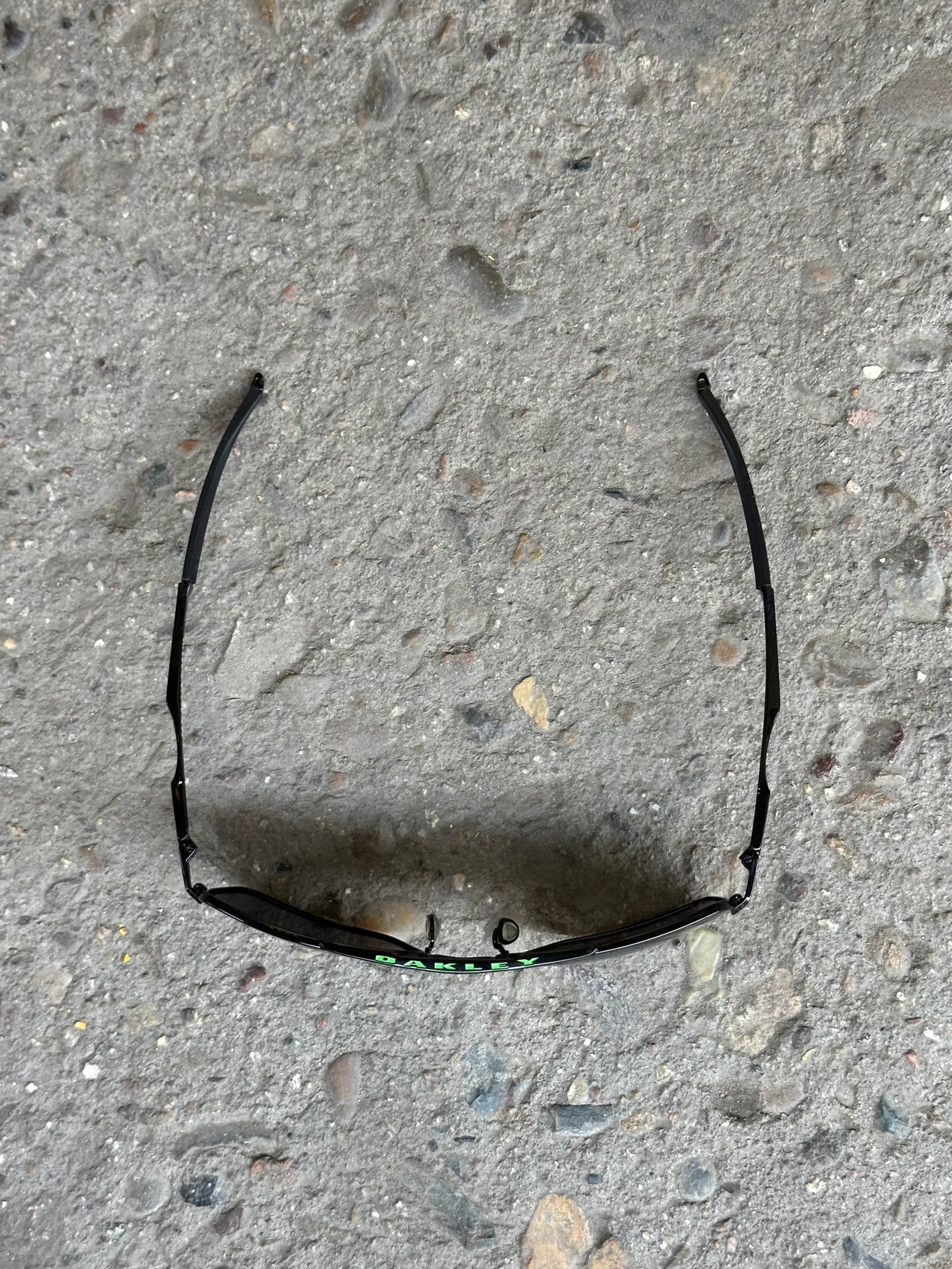 Limited collab piece featuring a lightweight metal frame with black polarized lenses. Subtle VR46 green detailing and original Oakley case included. No flaws, pristine condition.